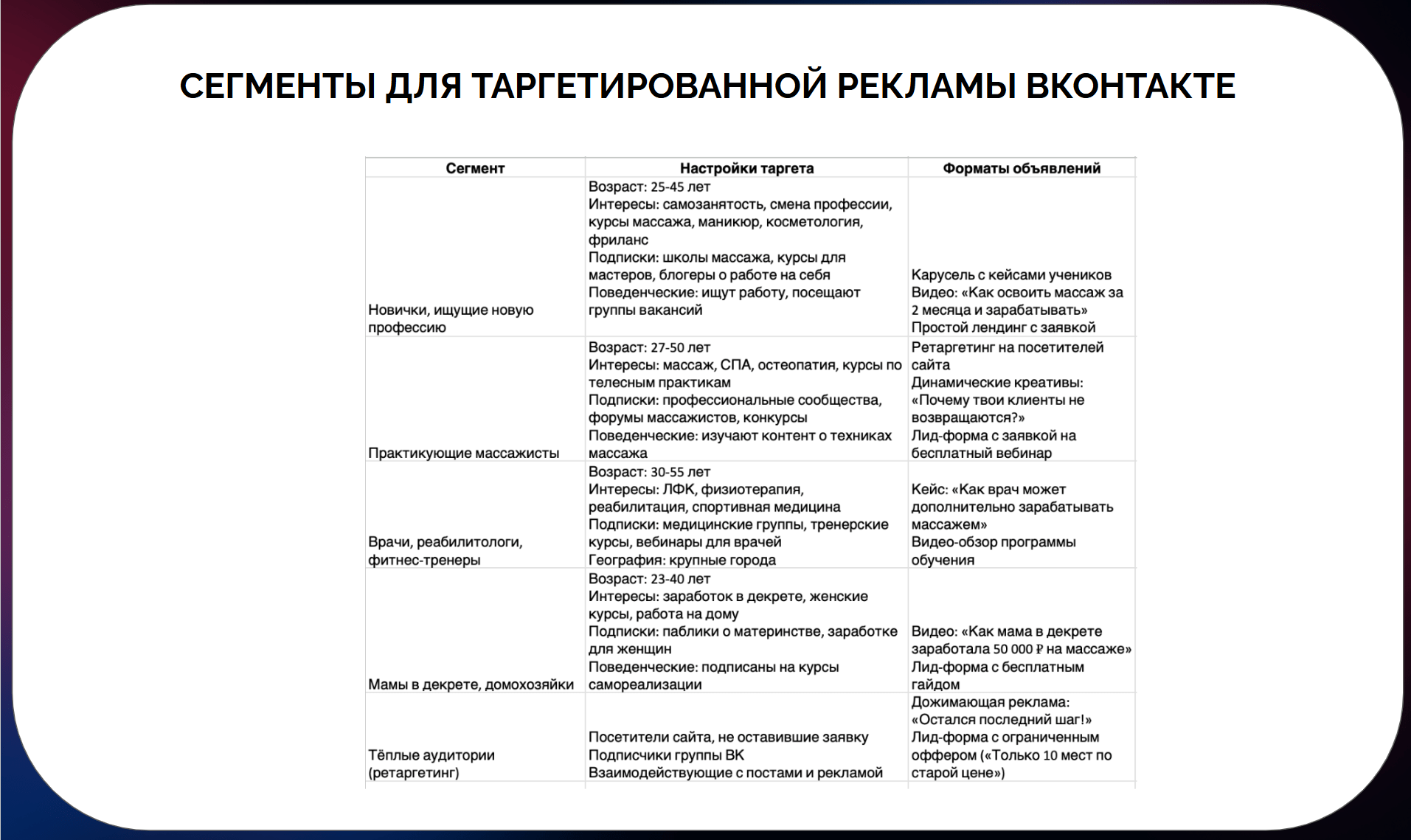 Эта аудитория уже зарабатывает массажем, но хочет прокачаться, чтобы повысить цену услуг и выйти на новый уровень.