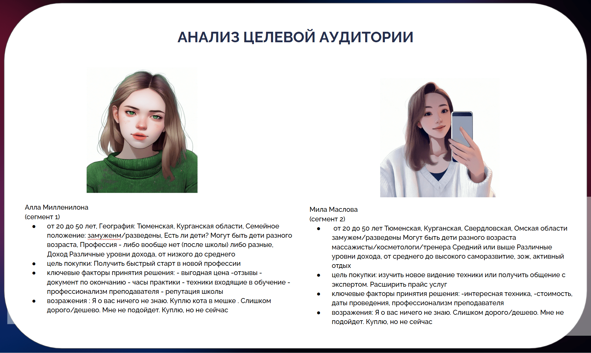 Эта аудитория ищет стабильный доход, рассматривает освоение новой профессии. Массаж — доступная и востребованная ниша, поэтому привлекателен для смены сферы.