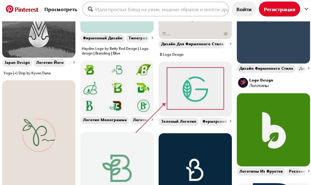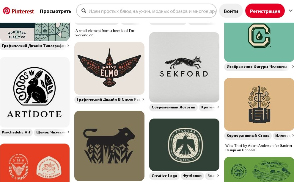 - Pinterest.com самый обширный сайт для вдохновения, на главной странице прямым текстом указано “Найдите свежие идеи”. Данный ресурс предлагает не только логотипы, но и другие изображения по теме “домашний декор”, “стильный образ”, “gui интерфейса для компьютерных игр” и многое другое. Ресурс мультиязычный, русский язык включен по умолчании и запускается автоматически при посещении.