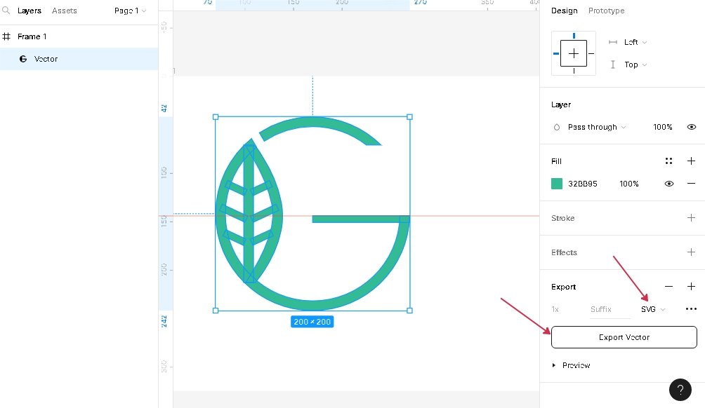 Для использования нашего logo нужно его экспортировать. Лучше сохранить в SVG.