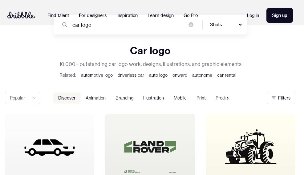 - Dribbble – платформа для дизайнеров, веб-дизанеров и иллюстраторов. Ресурс служит, как площадка портфолио для художников. Поэтому количество свежих идей достаточно и ежедневно публикуются новые художества. На главной странице есть поиск. Введите запрос для получения картинок по своей теме и выберите ключевое слово: Branding, Animation, Illustration. Пример ниже.