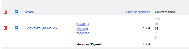 Что будет, если поставить данную фразу в кавычки: «купить кондиционер»? Тогда реклама будет показываться только по точной фразе без каких-либо дополнений. Оператор кавычки отсекает все «лишние» слова в фразе. Показы будут по фразам «купить кондиционер» и «кондиционер купить». А по фразе «купить кондиционер недорого» показов уже не будет.