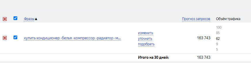 Пример: вы продаете кондиционеры, и хотите показываться по фразе купить кондиционер. Список минус-слов в этом случае будет длинным, и вам придется постоянно мониторить отчет по поисковым запросам, чтобы пополнять этот список. Невозможно отключить все нерелевантные фразы только лишь с помощью данного инструмента.