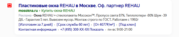 Впрочем, в РСЯ эта часть не столь важна, так как объявление можно сделать привлекательным за счет добавленного к нему изображения или видео. А вот в поисковой выдаче этот элемент значим для принятия пользователем решения о клике по рекламе.