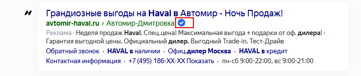 Заполнение и использование в объявлении виртуальной визитки повышает кликабельность рекламы на 12%.
