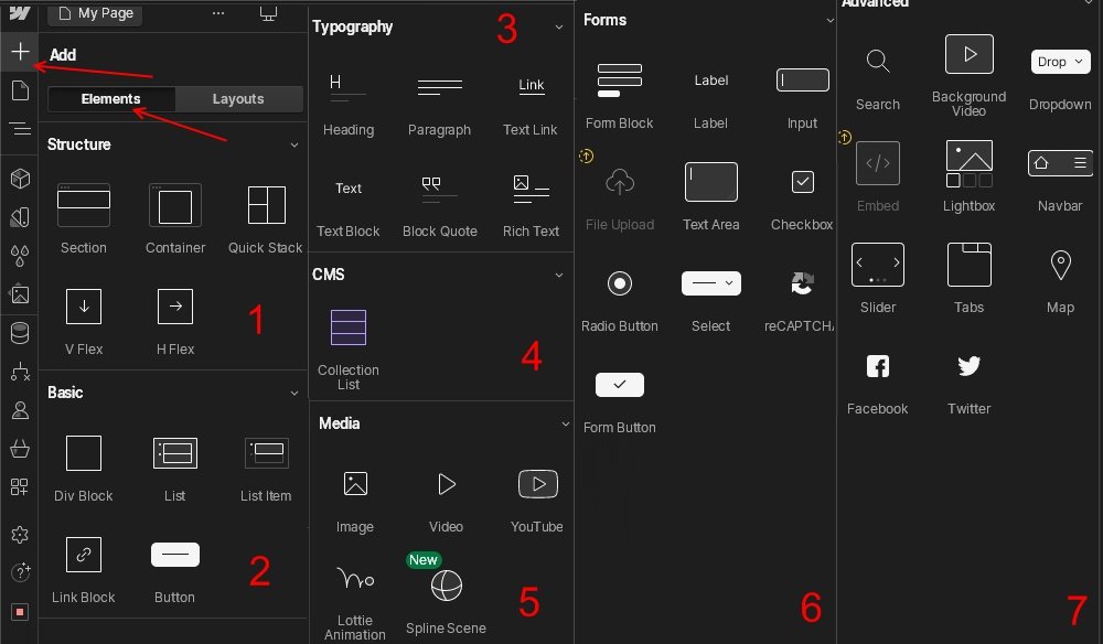 - CMS(Collection List) – способ оформления динамического контента. Пользователь может загрузить коллекцию, а потом добавить туда объекты.