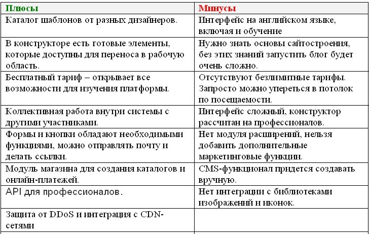 Данная платформа мощнейший инструмент для создания крутых проектов. Движок рассчитан на разработку блогов, корпоративных проектов и всего, что пожелает душа и бизнес-задачи. Обязательно попробуйте поработать с данным конструктором, для новичка хватит бесплатного тарифа. Для более сложных проектов потребуется купить тарифный план, так как бесплатный вариант имеет ряд ограничений, которые скажутся на работе в будущем.