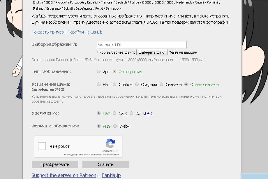 Сайт от японских разработчиков. Нейросеть онлайн бесплатно доступна по ссылке https://waifu2x.udp.jp/. Изначально была предназначена для того, чтобы работать с рисованной анимацией, но для обработки фотографий тоже подходит.