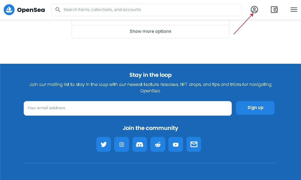 Дальше заполняем профиль, выбираем аватар и загружаем шапку. Вводим дополнительную информацию о себе. Для этого переходим в настройки, нажав иконку шестеренки, она находится справа под шапкой. Данные следует указать – Username, Bio и адрес электронной почты (Email). После заполнения почты сервис Opensea попросит подтвердить Email и придет письмо.