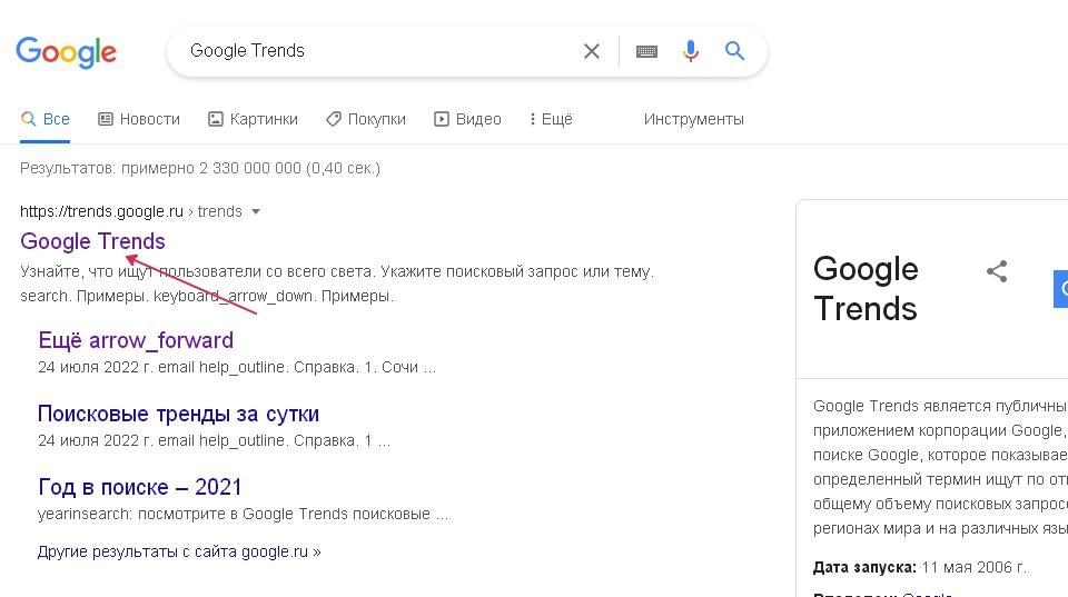 Популярность запросов у гугла можно увидеть, перейдя в сервис Google Trends.