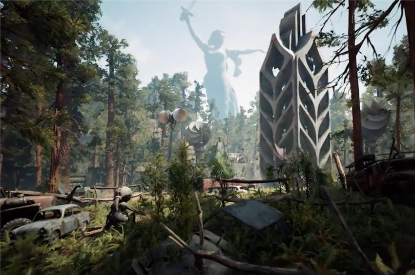 Окружающий мир выглядит в соответствии с Советской эпохой. Перемещаясь по территории можно встретить машины того времени, внутри комнат все украшено звездами, а над лесом возвышается Родина-Мать.