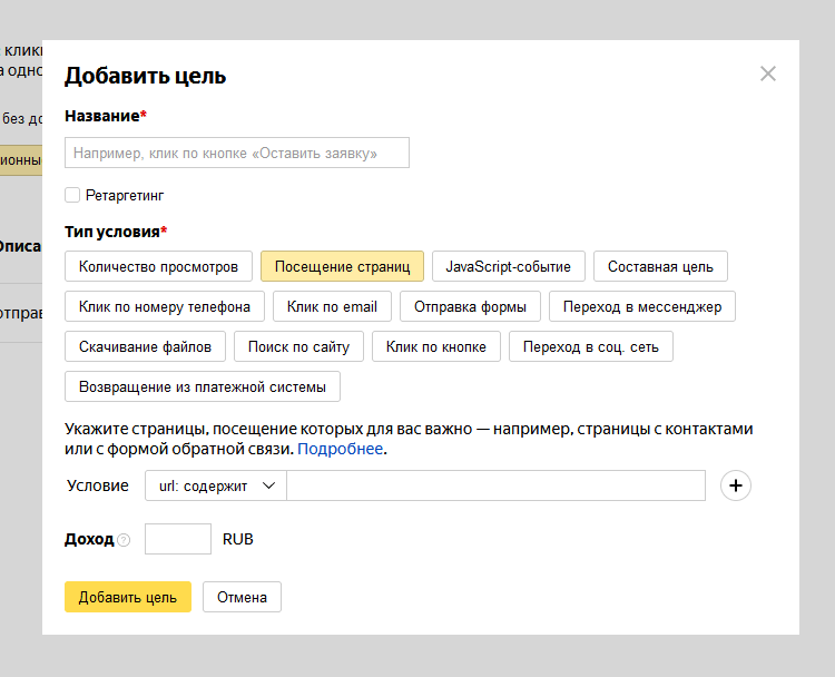 Итак, залогом успеха рекламы станут настроенные в Яндекс.Метрике цели — посещение определенных страниц, нажатие кнопок на сайте, отправка заполненных форм пользователями и другие события на сайте. В Яндекс.Метрике предусмотрено множество вариантов для определения ключевых целей на сайте: