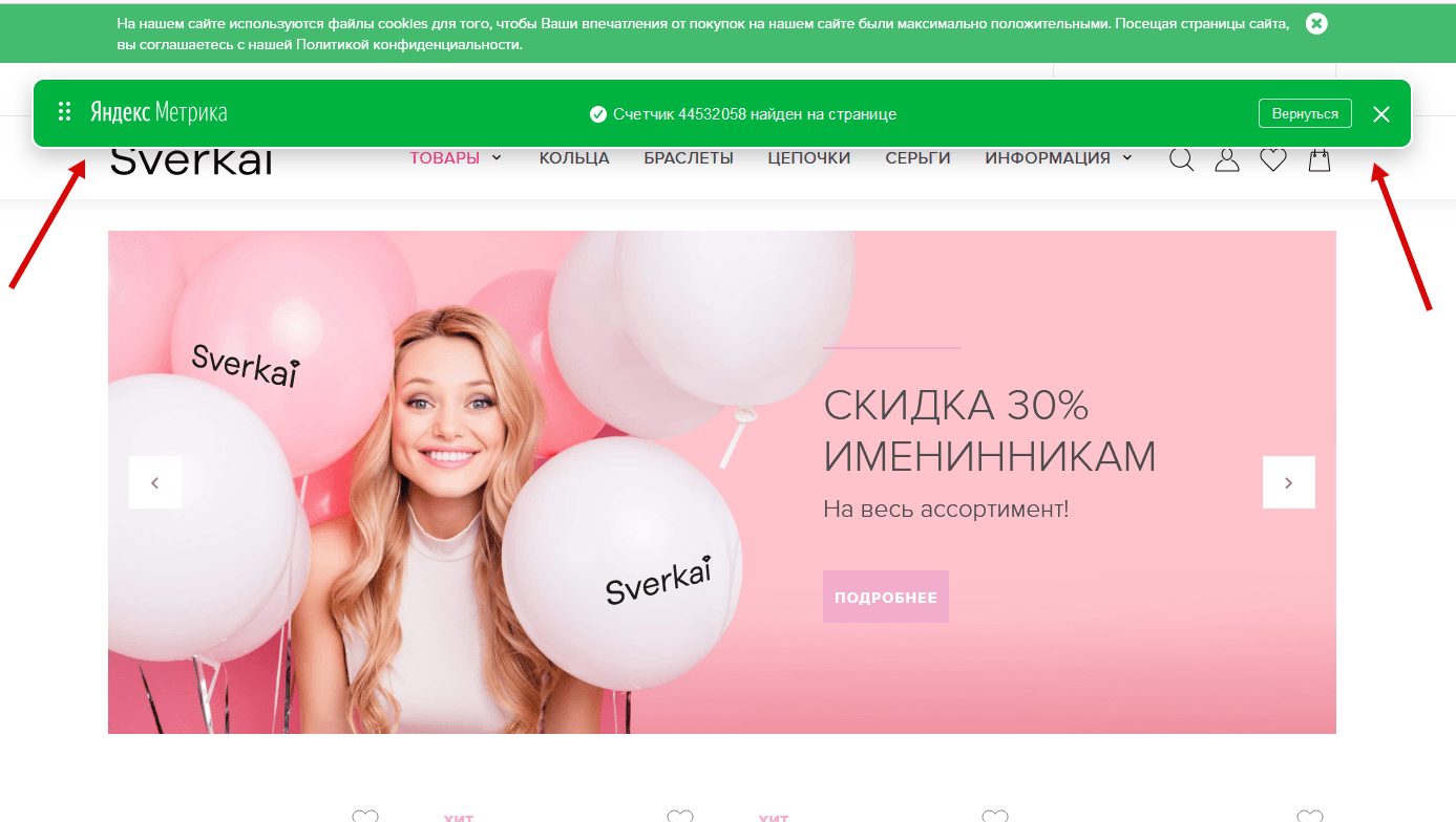 Если счетчик установлен корректно, вам будет доступно на сайте вот такое уведомление: