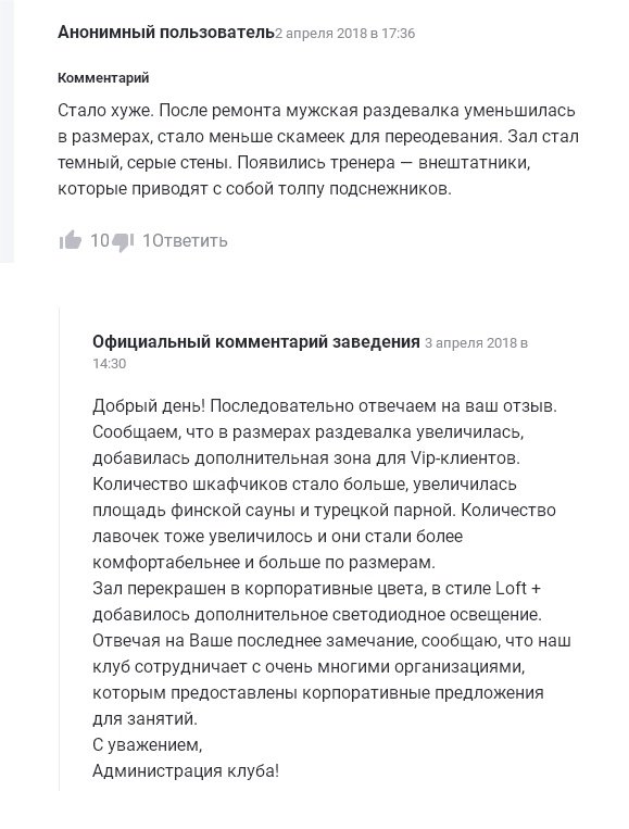 Ответы на негативные отзывы клиента, пример. Ниже предоставлен пример от администрации спортклуба. Клиент недоволен ремонтом мужской раздевалки.